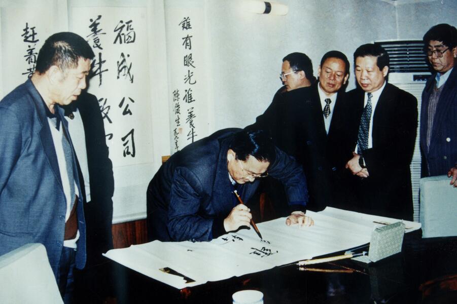 國(guó)務(wù)委員陳俊生親自為公司題寫“發(fā)展養(yǎng)牛事業(yè)、造福三河人民”